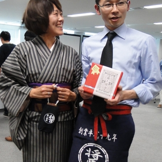 あ、写真は残念ながらわたしではなく、粋な着物で来ていた友人、顔出しOKと言ってくれたきりまるさんと高橋万太郎氏です。